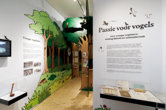 bijzonder maakt. In de speels vormgegeven tentoonstelling wordt nog niet eerder getoond archiefmateriaal gecombineerd met unieke objecten van de vogelaars zelf. Samen vertellen ze de geboorte van de Nederlandse veldornithologie. Een tak van wetenschap die niet alleen gebaseerd is op kennis, maar juist ook bol staat van de bijzondere passie die vogelliefhebbers drijft. Wie eenmaal door een verrekijker naar vogels tuurt, is voor altijd verkocht. Op deze wijze kan tegenwoordig iedereen bijdragen aan de wetenschap.
